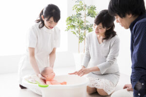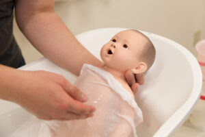 夫婦で協力して赤ちゃんをお風呂に入れてみましょう。