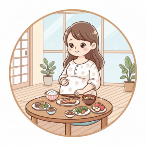妊娠による付加量として、妊娠初期は+50kcal、中期は+250kcal、末期は+450kcalとなります。